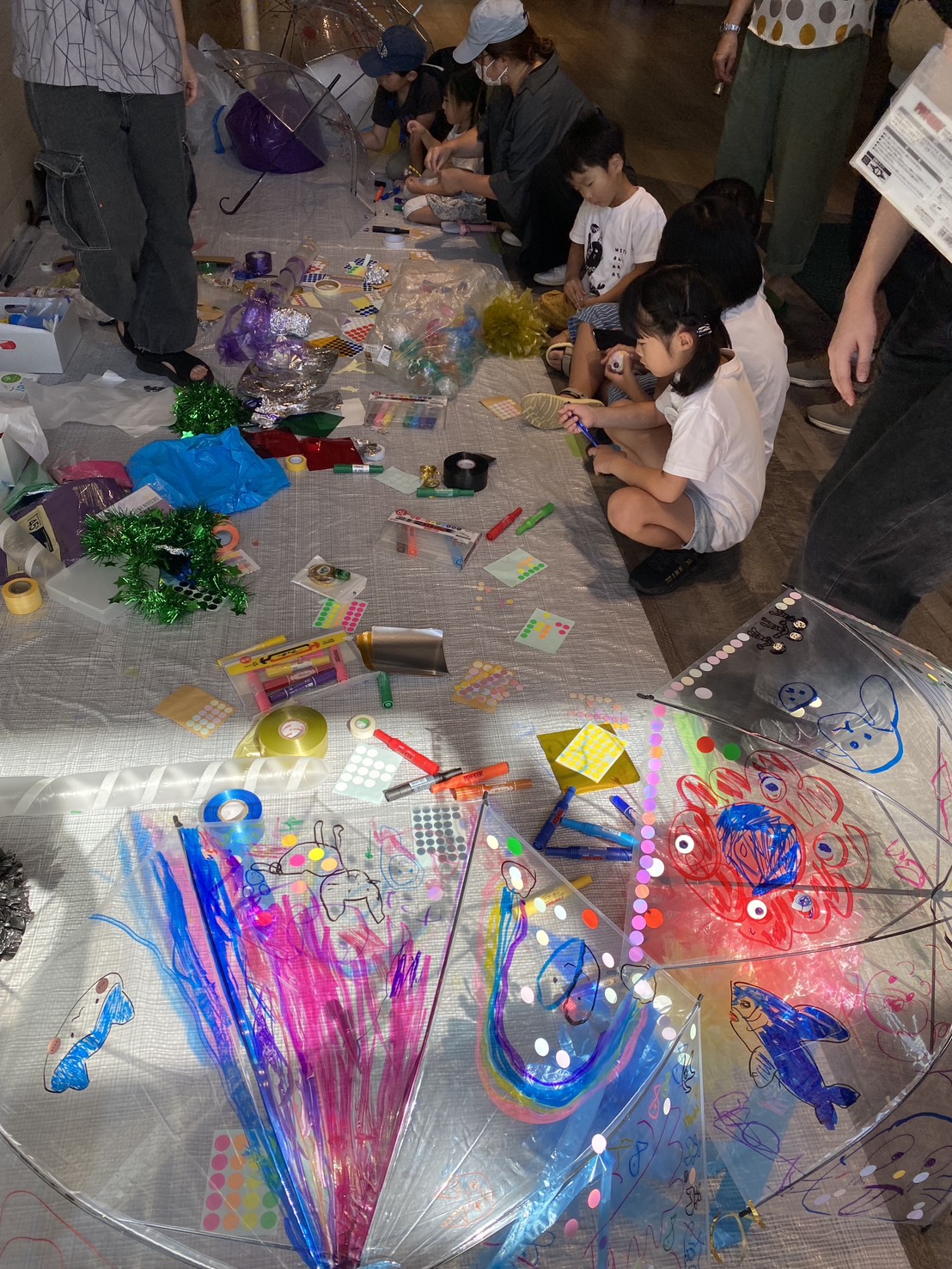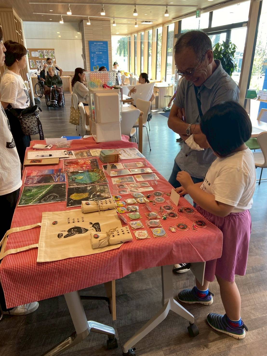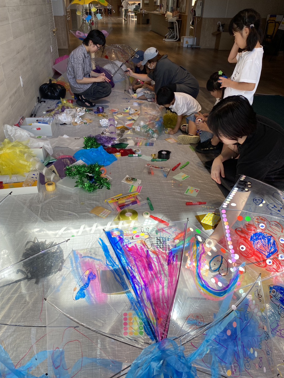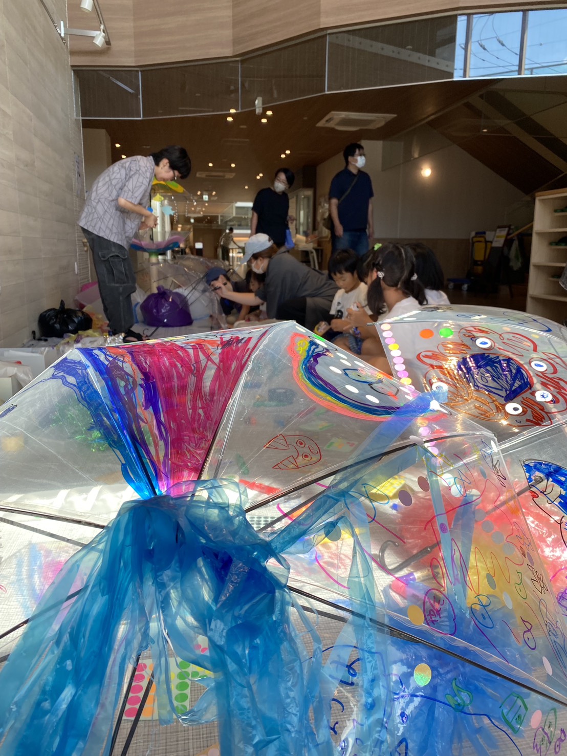 waaa 初の他市出張型イベント、「大地の歌 ~ぼくらはみんな生きている」の開催が無事終了いたしました。 他市ということもあり、準備に行ったり来たりのプチ旅行感がありましたが、小金井とは違った風景の面々を楽 しむことが出来ました。緑豊かな場所に建つ「喜望園」は、開放的でゆるりとした時間が流れています。 地域に開かれた施設で、地域に開かれたイベントということもあって、当日は喜望園の利用者様をはじめとした 地域の方々が織り交ざった素敵な会となりました。エプソンのプロジェクションマッピングに合わせた生演奏は 好評で、視覚と聴覚に響いたコンサートとなりました。また、ロビーでの営巣は、グランドピアノの響きとマリ ンバやバイオリン、声楽といった本物の響きが施設全体に響き渡り、多くの利用者さんたちが響きに引き寄せら れて鑑賞されていました。演奏の合間には、カフェでの美味しいランチでお客さん同士が情報交換の交流があっ たり、学芸大学の学生さんによるワークショップで、水族館をイメージしたものづくりに子どもたちの制作意欲 が発揮されたり、イベント全体が賑わい豊かな空間となりました。ワークショップで作った作品を持って廊下を 走る子どもたちの姿は、なんだか昭和の良き時代の遊びが甦ったようで、ご来場者の方々が優しく微笑んでいま した。障がいのある人もない人も、一緒に楽しむイベントを企画する waaa としては、成功の一つになったので はないかと思っています。楽しい場所で知り合った人、仲良くなった人がたまたま障がいのある人だった。そん な何気ない日常が良いですね。